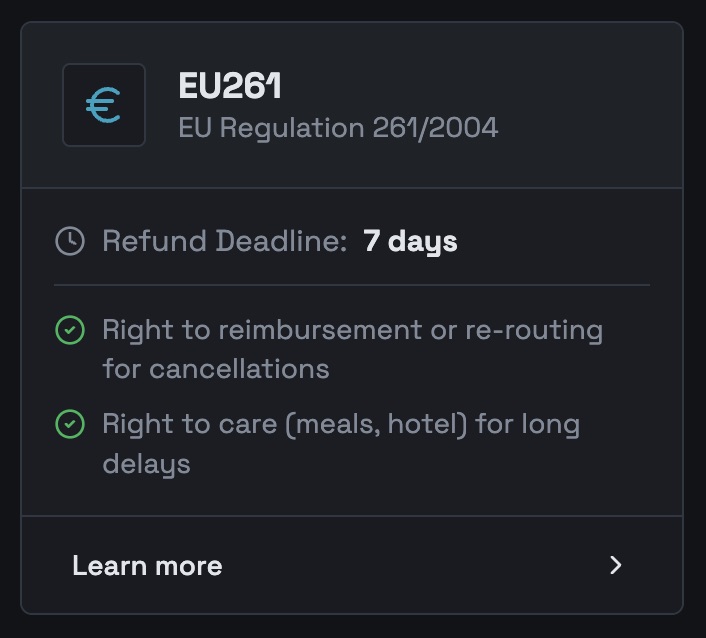 We track your legal deadlines based on your flight and jurisdiction. When the airline misses their window, you'll know. And you'll have proof.